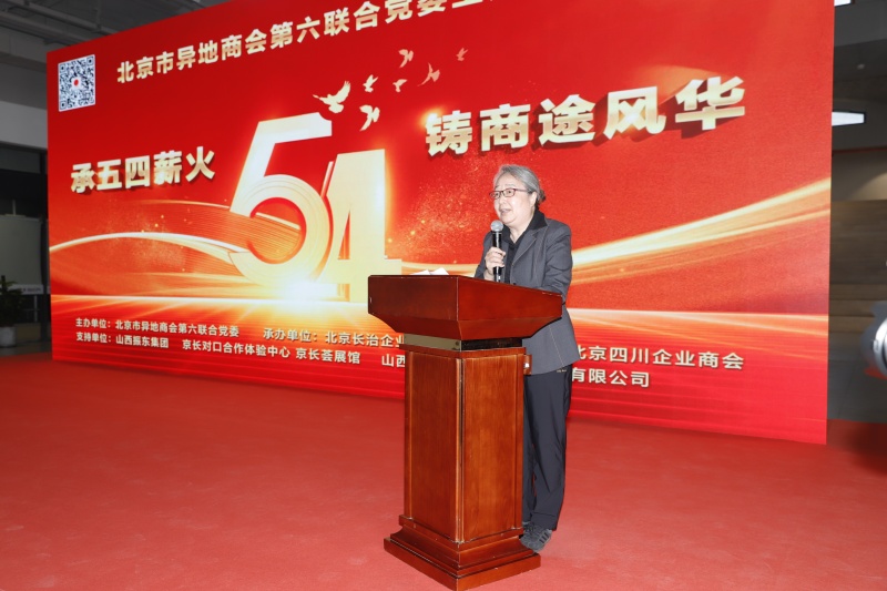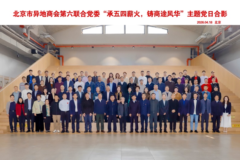 2026年4月18日下午,北京市东城区天鼎218文化金融园N2京长荟内气氛庄重而热烈。北京市异地商会第六联合党委(以下简称"京异商六联党委")在此成功举办"承五四薪火,铸商途风华"主题党日活动。活动旨在传承伟大五四精神,凝聚商会青年力量,激励青年企业家勇担时代使命。本次活动由北京长治企业商会承办,北京四川企业商会协办,来自广东、四川、山西和江苏在京商会党组织代表、商会会长及青年企业家代表一百二十余人共聚一堂,拍摄视频,合影留念,定格了主题活动的精彩瞬间。